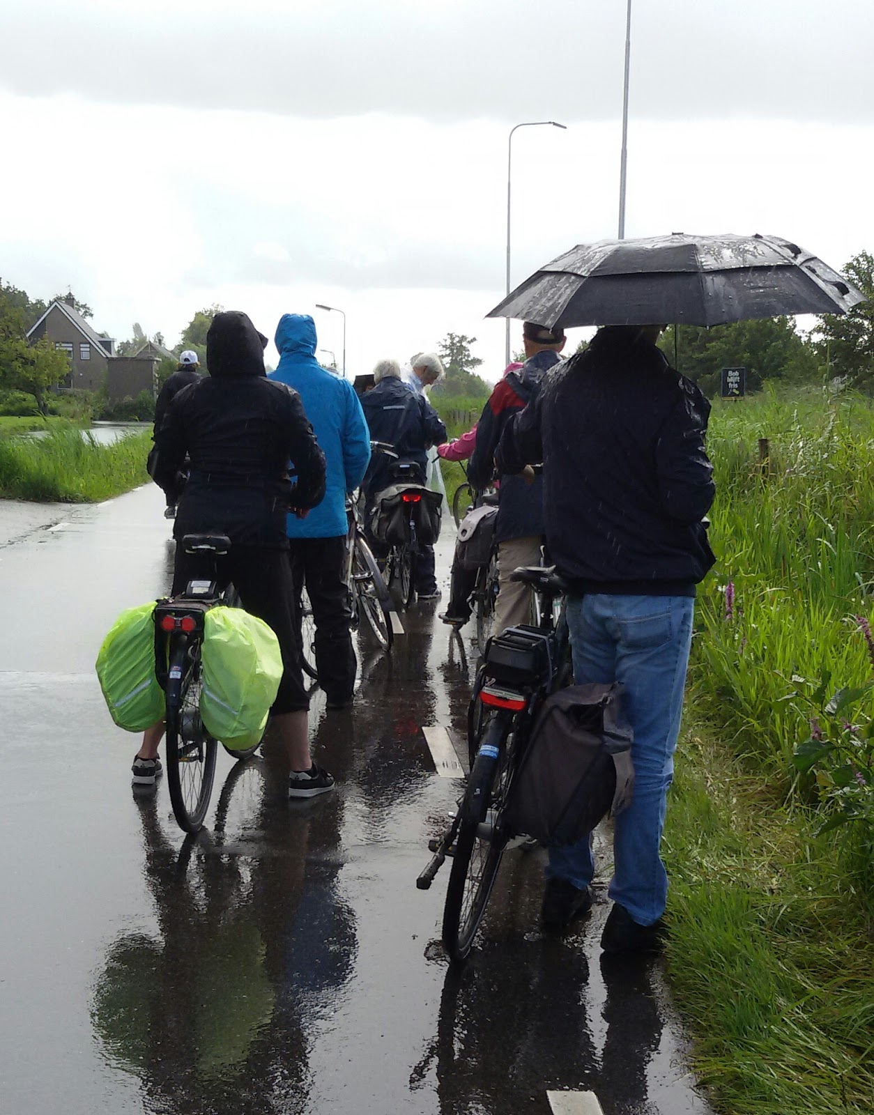 Wat een fantastische traditie... gezellig zo allemaal samen. Een buitje was wel te verwachten met die donkere lucht maar zo is Nederland (en Belgiƫ) nu eenmaal. Nederland, heerlijk mooi fietsland toch!
